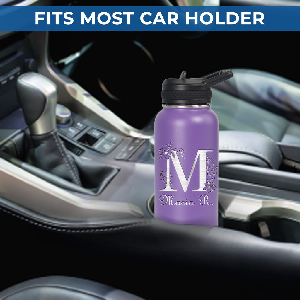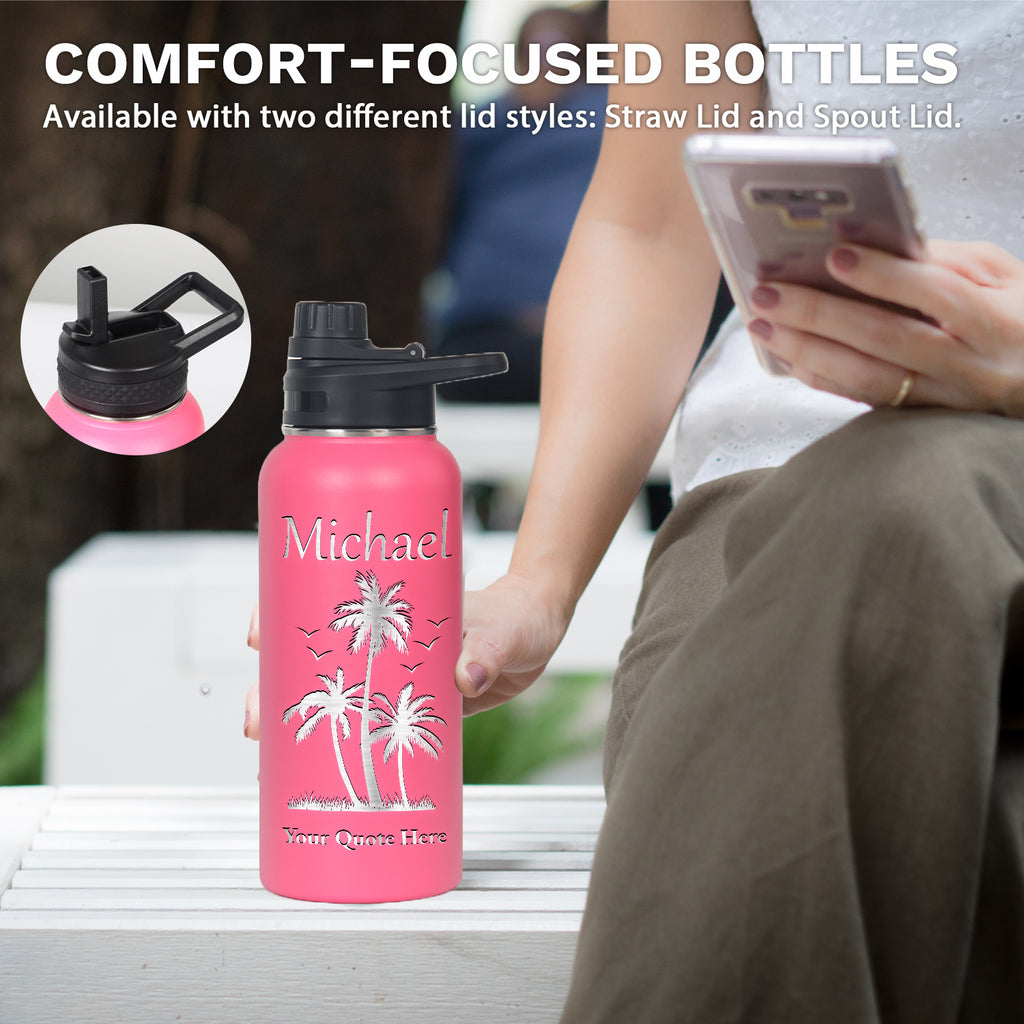 Personalized 32 oz Water Bottle with Flip-Top Straw/Flip Top Lid, Customized Insulated Sports Water Bottle, Insulated Stainless Steel Water Bottle
