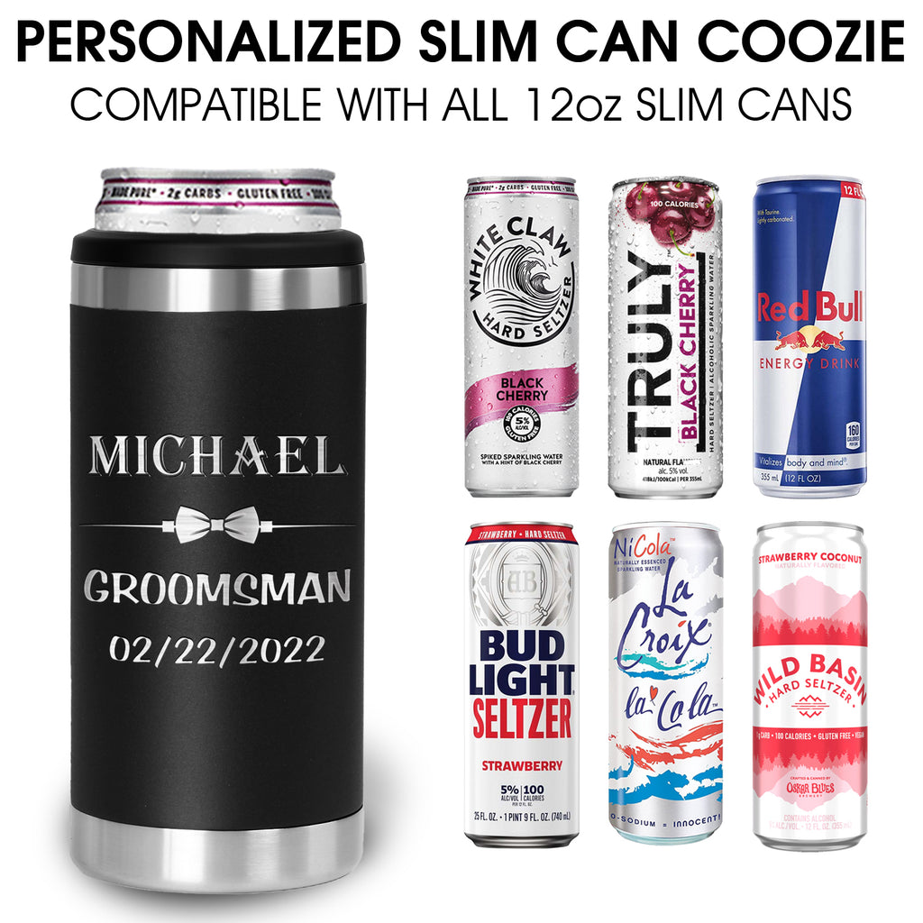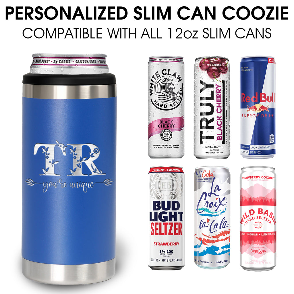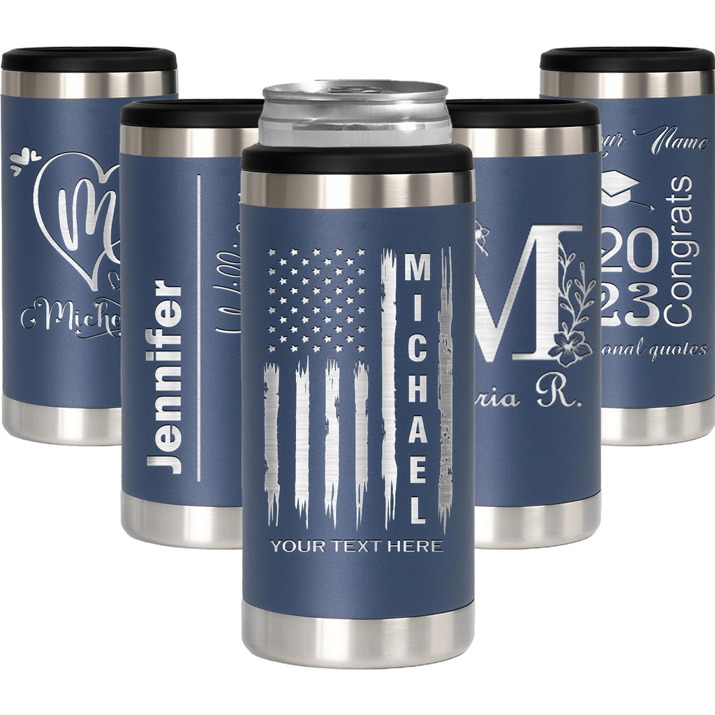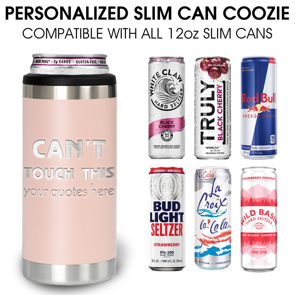 Personalized Slim Can Cooler - Custom Laser Engraved 12oz Stainless Steel Insulator for Hard Seltzer & Skinny Cans - Keeps Drinks Ice Cold 12+ Hours!